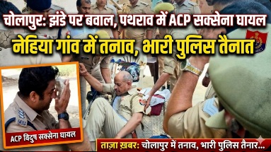 चोलापुर के नेहिया गांव में नीले और केसरिया झंडे को लेकर उपद्रव: पथराव में एसीपी विदुष सक्सेना सहित कई जवान घायल, भारी पुलिस बल तैनात