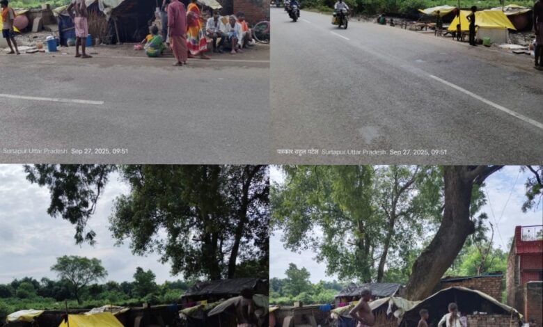 भाँवरकोल (गाजीपुर)। राष्ट्रीय राजमार्ग 31 पर कुंडेसर ग्रामीण बैंक के सामने अनुसूचित जाति डोम बिरादरी का एक परिवार वर्षों से सड़क किनारे जीवन बसर करने को मजबूर है। बरसात के दिनों में हालात और भी दयनीय हो जाते हैं। सड़क किनारे उनकी झोपड़ियों के आगे हमेशा पानी और कीचड़ भरा रहता है, जिससे उठने-बैठने तक की जगह प्रभावित हो जाती है।