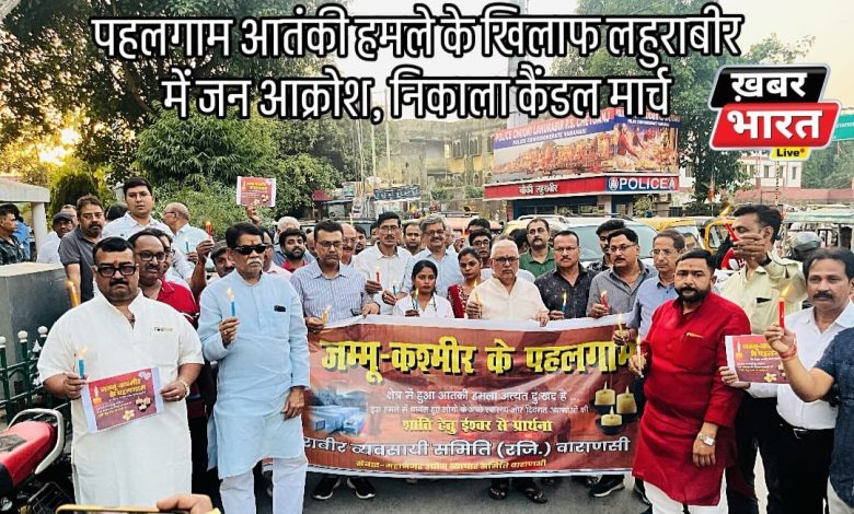 वाराणसी। आज लहुराबीर व्यवसाय समिति के तत्वावधान में जम्मू-कश्मीर के पहलगाम में हुए कायराना आतंकी हमले के विरोध में कैंडल मार्च निकाला गया। यह आयोजन लहुराबीर स्थित आजाद पार्क में सायं 5:00 बजे भारी संख्या में व्यापारियों और नागरिकों की उपस्थिति में किया गया।