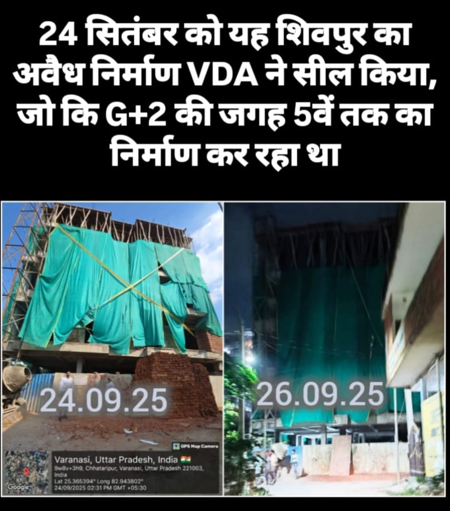 वाराणसी में सुनियोजित विकास की जिम्मेदारी जिस वाराणसी विकास प्राधिकरण (VDA) पर है, उसी के अधिकारियों पर अवैध निर्माण को संरक्षण देने के गंभीर आरोप लग रहे हैं। VDA जोन-1 के जोनल अधिकारी शिवाजी मिश्रा पर एक बार फिर सील किए गए भवन में अवैध निर्माण कराए जाने का मामला सामने आया है, जिसने प्राधिकरण की कार्यशैली पर बड़ा सवाल खड़ा कर दिया है।