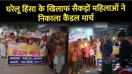 वाराणसी (जंसा/रामेश्वर)। घरेलू हिंसा और महिलाओं के खिलाफ बढ़ते अपराधों के विरोध में बुधवार शाम को कपड़धोड़वा लहिया बाजार में सैकड़ों महिलाओं और युवाओं ने लोक समिति एवं आशा ट्रस्ट के बैनर तले जोरदार कैंडल मार्च निकाला। हाथों में जलती मोमबत्तियां लिए महिलाओं ने एक स्वर में नारे लगाए – “महिला हिंसा बंद करो”, “भीख नहीं अधिकार चाहिए, जीने का सम्मान चाहिए”, “औरत इंसान है, भोग की वस्तु नहीं”, “यौन हिंसा पर रोक लगाओ” और “घरेलू हिंसा नहीं सहेंगे, आवाज उठाएंगे”।